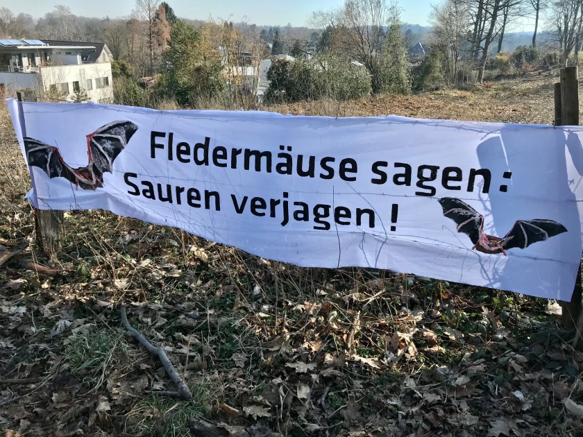 Mit der Besetzung und der Wanderung soll auf die Klimakrise aufmerksam gemacht werden. Das steht auf einem Flyer, den der Sprecher der Grünen im Aachener Stadtrat, Henning Nießen, heute vor Ort verteilte. Er hat dieser Tage übrigens mitgeteilt, dass er im kommenden Jahr für den NRW-Landtag kandidieren wird. Motto: „Artenvielfalt verteidigen: Auf den Bäumen und im Parlament“.