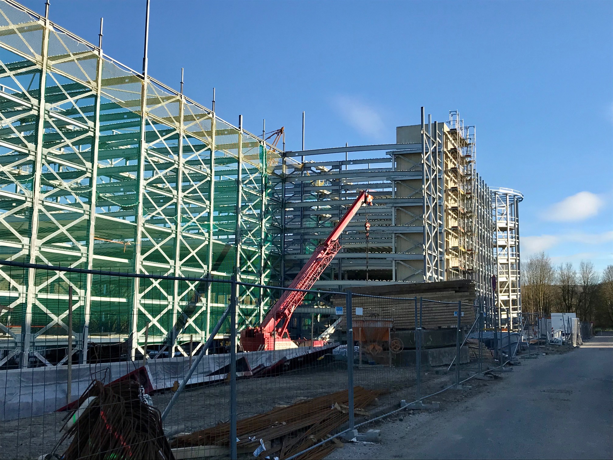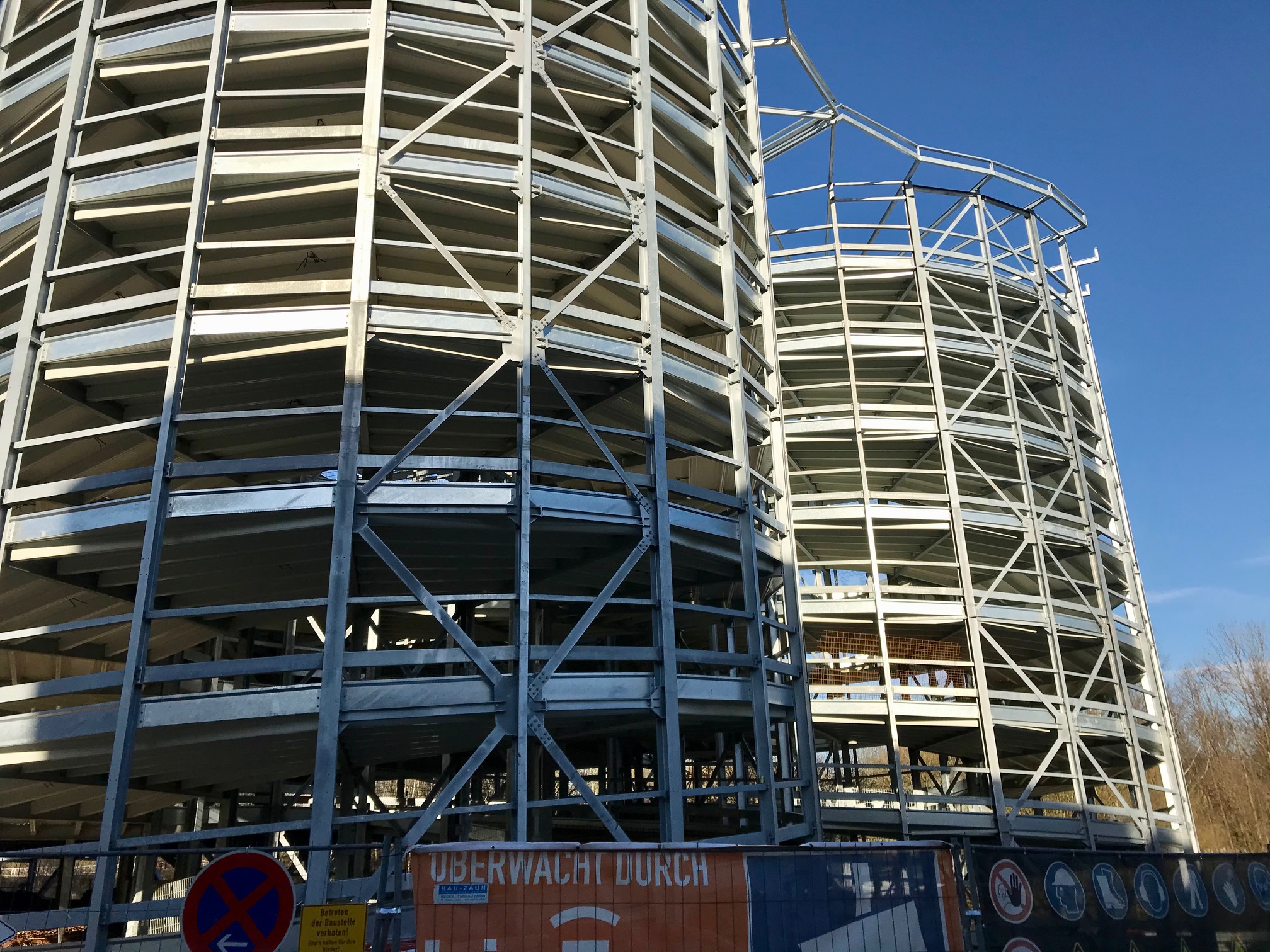Kaum kommt man mal ein paar Monate nicht am Klinikum vorbei, schon verändert sich dort die Gegend gewaltig. Aus dem Boden gewachsen ist ein jetzt noch halbfertiges Parkhaus. An dem wird schon seit einem Jahr gebaut. Im März 2022 soll es eröffnet werden.