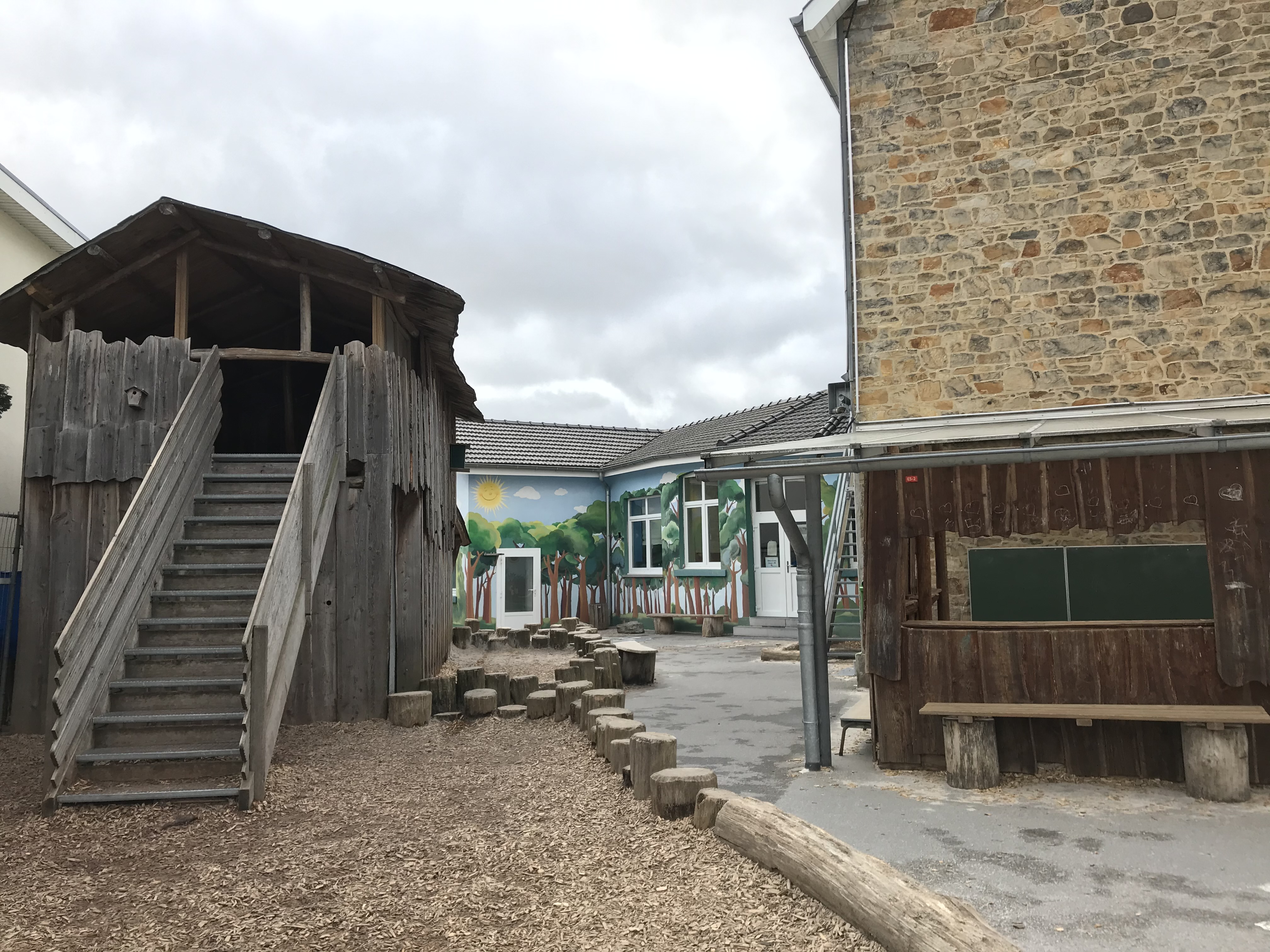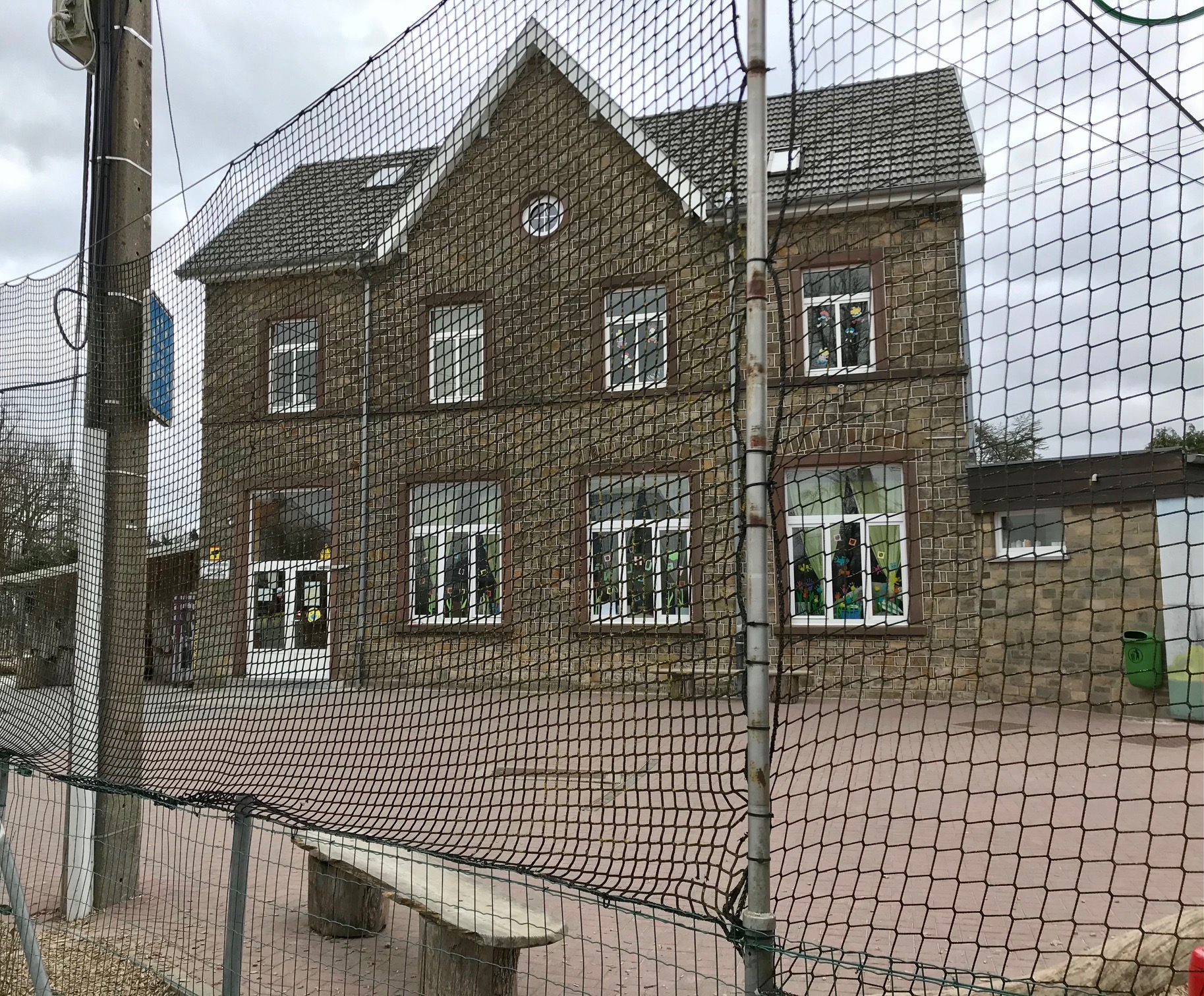 Zur Erinnerung. In dem Gebäude in Lichtenbusch lernen und spielen Grundschulkinder und Kita-Kinder aus Deutschland und Belgien. Die Grenze geht mitten durch den Ort, und Lichtenbusch ist sowohl ein Ortsteil von Aachen als auch ein Ortsteil von Raeren (Belgien). Als „Europa im Kleinen“ funktioniert dort das Zusammenleben offensichtlich geradezu vorbildlich.
