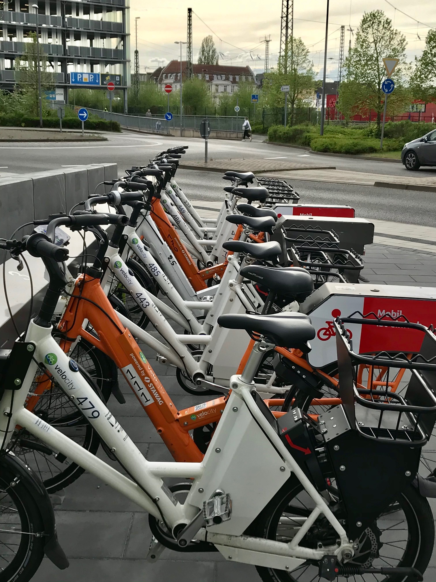 Beim Spazieren entdeckt: zwei neue Stationen von Velocity am Eisenbahnweg! Im Hintergrund sieht man noch ein Stück vom Parkdeck der Aachen Arkaden, wo übrigens das Dauerparken ziemlich kostengünstig möglich ist.
