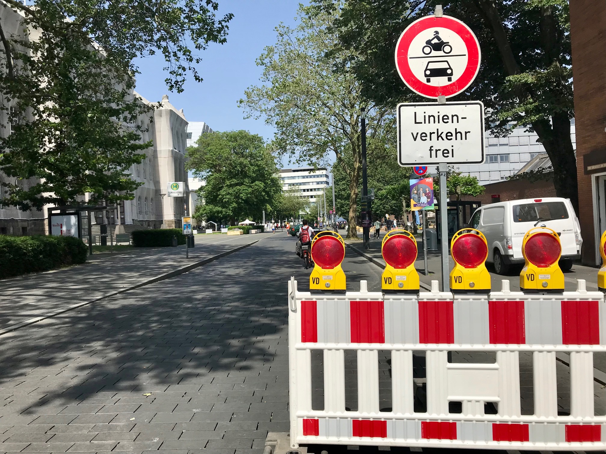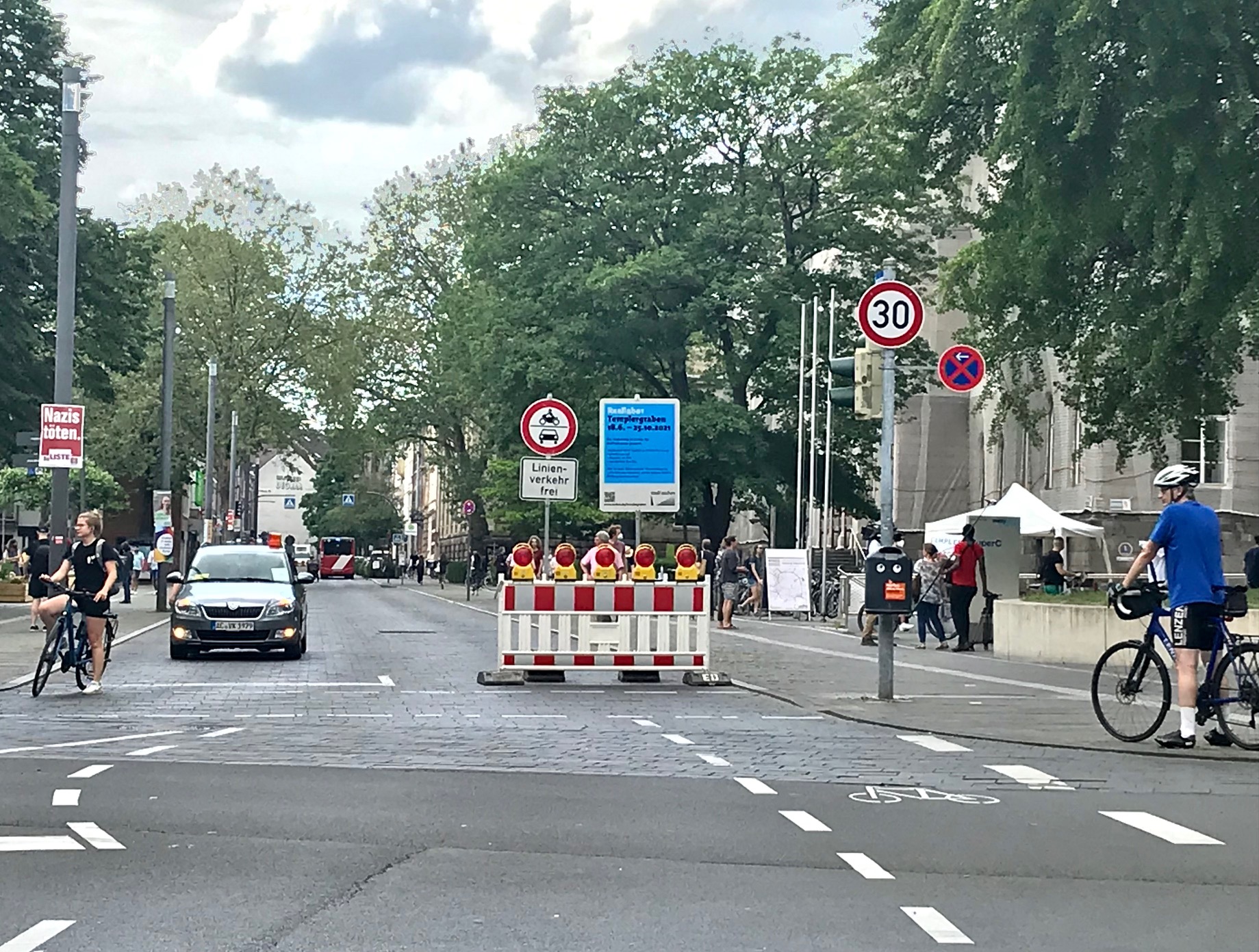 Die gewohnte Verkehrsführung auf dem Templergraben zwischen Wüllner- und Schinkelstraße hat sich verändert. Bis zum 25. Oktober 2021 ist der Templergraben auf diesem Abschnitt Fußgänger*innen, Radfahrer*innen und Linienbussen vorbehalten.