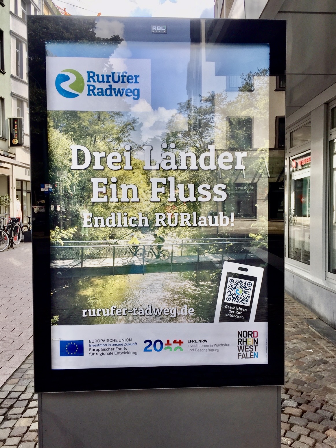 - Foto unten: Werbung für den RurUfer-Radweg z. Z. im Stadtbild von Aachen zu sehen.