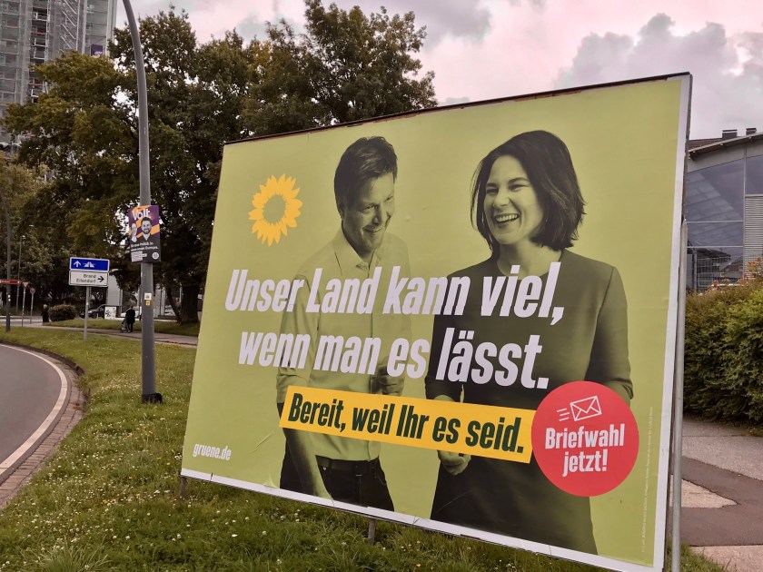 Auf allen Wahlplakaten der Grünen findet sich der Slogan „Bereit, weil Ihr es seid.“ – wir (werden geduzt und) verstehen: Wir alle – Wählerinnen und Wähler, die Wirtschaft und das ganze Land – sind jetzt BEREIT.