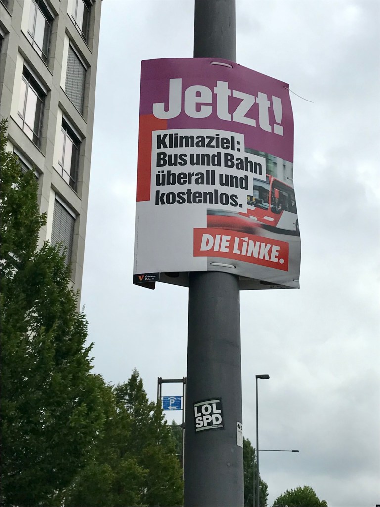 Früher konnte man anscheinend noch warten, aber jetzt reicht es mit den Waffenverkäufen, jetzt reicht es mit dem niedrigen Mindestlohn, jetzt müssen Busse und Bahn kostenlos werden. Man will plötzlich nicht mehr warten, die Wähler*innen sollen endlich ihr Kreuzchen bei der richtigen Partei machen. Vom Wahlvolk wird Aktivität gefordert. Da ist nicht die Rede davon, dass jemand „für dich“ (s. SPD) nach Berlin geht und dort „für dich“ Dinge regelt.