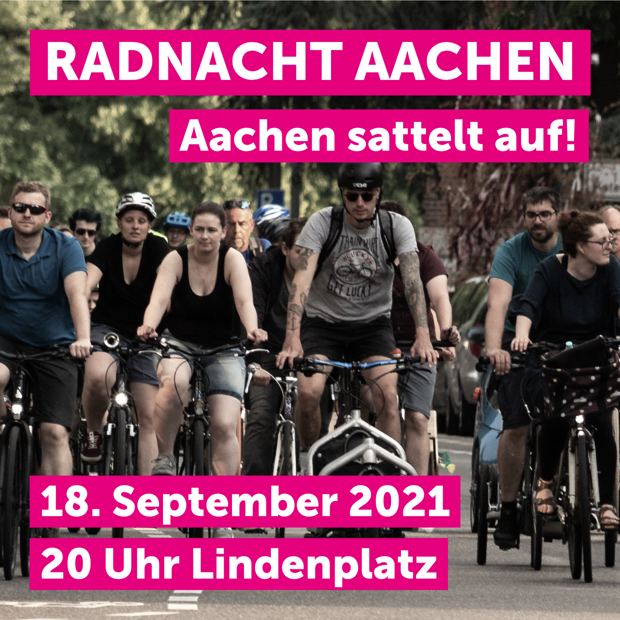 Das wird eine muntere Tour: Die Gruppen ADFC, Radentscheid und Uni.Urban.Mobil laden ein zur Radnacht 2021 am Samstag, 18. September, um 20 Uhr ab Lindenplatz in Aachen.