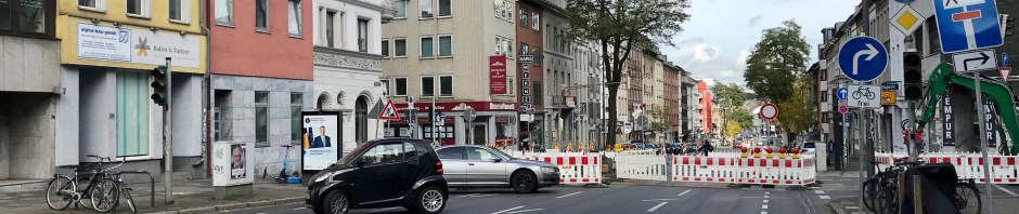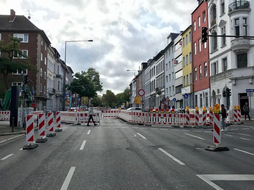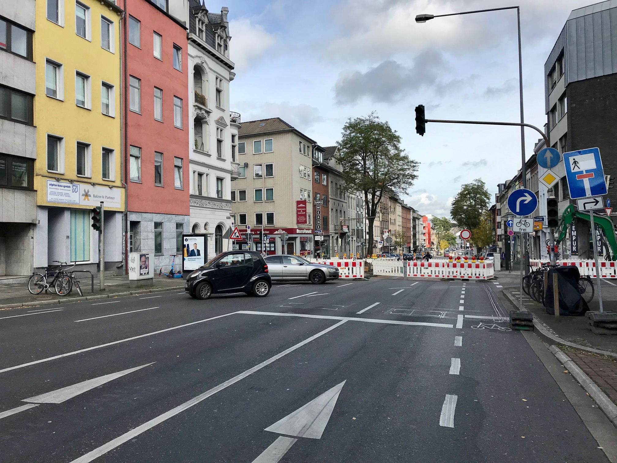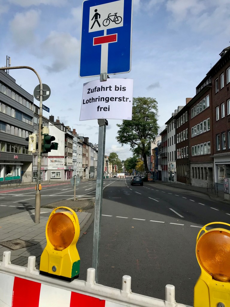 Die Baustelle, die dem Aachener Autoverkehr den Rest gibt: Wilhelmstraße, von der Lothringerstraße aus gesehen. Für Fußgänger*innen und Fahrradfahrer*innen ändert sich übrigens nichts. Sie kommen überall vorbei.