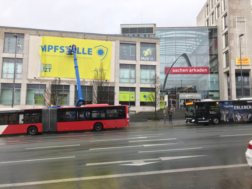Gleichzeitig ruft der Gesundheitsdezernent dazu auf, dass alle Menschen, die mobil sind, eher in die Impfstelle in den Aachen-Arkaden kommen, als zu den dezentralen Impfstellen. Bis zu zehn Impfstraßen stehen zur Verfügung, ein zweites Ladenlokal in den Aachen-Arkaden ist in Vorbereitung. Ziemons sagt: „Jede Impfung mit einem in Europa zugelassenen Impfstoff ist besser als keine Impfung.“