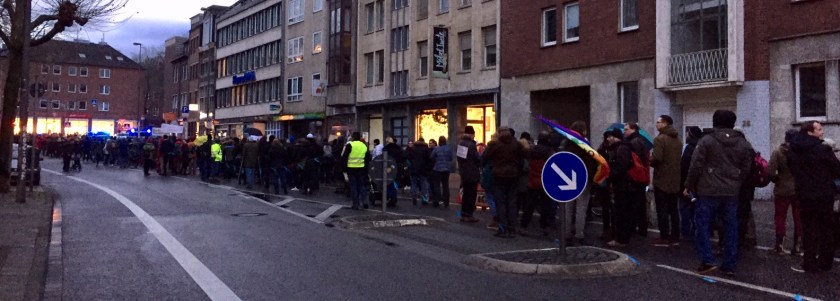 In Nähe der Franzstraße löste sich die Demo auf. Zum Abschluss wurde das Lied „Die Gedanken sind frei“ angestimmt. Am kommenden Samstag werde man wieder demonstrieren. Treffen ist um 15 Uhr in der Monheimsallee.