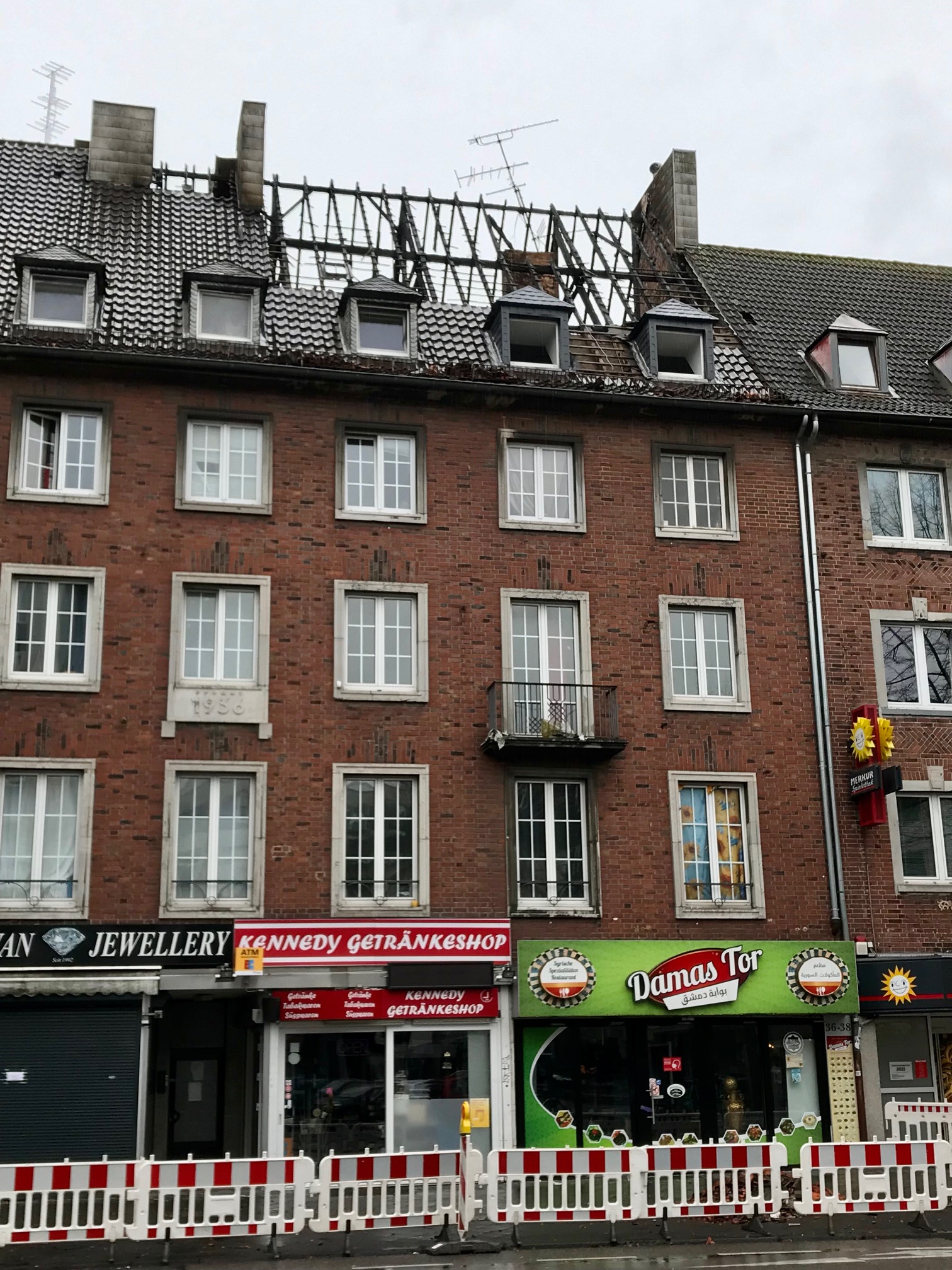 Nach einem Wohnungsbrand in Aachen in der Peterstraße 38 am 1. Januar drohte der im Mitleidenschaft gezogen Kamin einzustürzen. Durch die Feuerwehr wurde in Zusammenarbeit mit dem städtischen Bauhof und der Polizei zunächst die Peterstraße zwischen Komphausbadstraße und Kurbrunnenstraße für den Fahrzeugverkehr voll gesperrt.