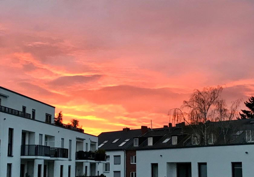 Wie schön ist doch das Morgenrot, wenn man es nur schafft, früh aufzustehen. Allein, die romantischen Anwandlungen schwinden schnell. Denn die Wikipedia sagt uns: In Gebieten mit hoher Luftverschmutzung und nach Vulkaneruptionen mit hohem Ascheausstoß sind die Phänomene von Morgenrot wie Abendrot wegen der Lichtstreuung an Schwebstoffen in der Luft besonders stark ausgeprägt.