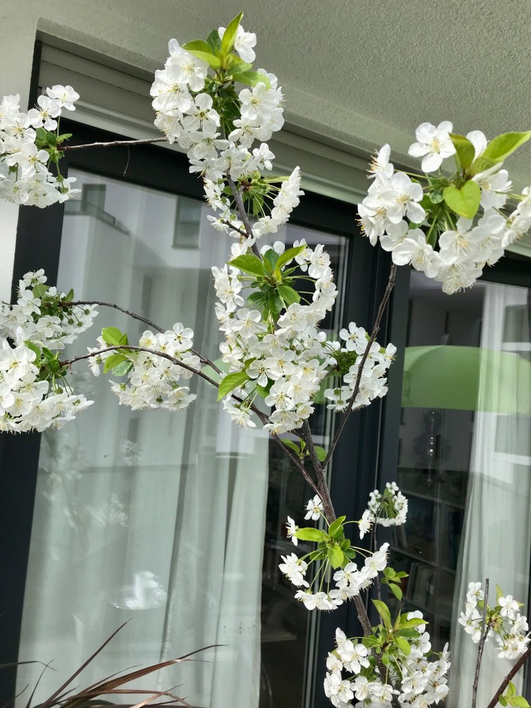 Auf dem Balkon in Aachen-Forst. Kirschenblüte.