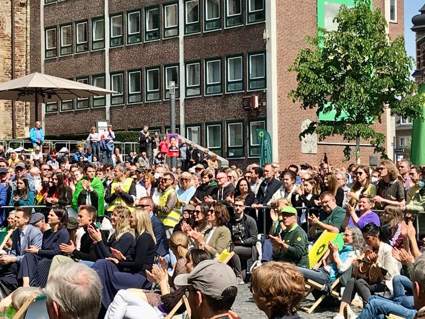 UPDATE: Annalena Baerbock hat sich und ihre Haltung hinsichtlich Krieg in der Ukraine in Aachen sehr gut erklären können. Sie erhielt viel Beifall. Die Menschen, die man von früheren Anti-Impf-Demos kennt, waren allerdings auch da, brüllten gelegentlich „Kriegstreiber“ (womit sie komischerweise nicht Putin meinten) und störten im Großen und Ganzen nicht besonders.