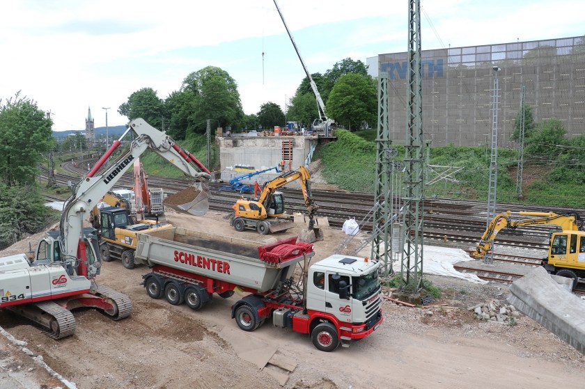 Schließlich hat eine Gleisstopfmaschine in der Nacht von Dienstag, 24. Mai, auf Mittwoch, 25. Mai, den Schotter im Oberbau unter den Schwellen verdichtet. Ein Schienenpflug kehrte den Schotter von den Schwellen. Auch die Signale der Gleisanlage sind wieder montiert. Die ersten Bagger wurden bereits abtransportiert. Heute, Freitag, 27. Mai, wird ab 21 Uhr der Zugverkehr wieder über die Bahngleise rollen.