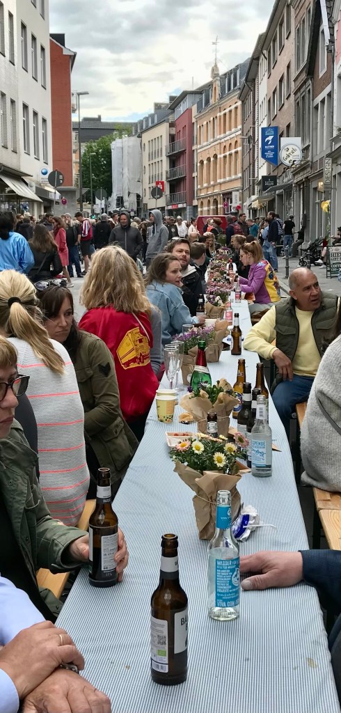 Die Jakobstraße (die zur Zeit ohnehin in Teilen eine Baustelle ist) feierte am Wochenende schon mal ein Straßenfest (s. unten). Auffallend: Niemand trug eine Maske. Der Flohmarkt auf dem Mittelstreifen der Oppenhoffallee wurde am WE ebenfalls sehr gut besucht. Am Samstag, 11. Juni, feiert die Wirichsbongardstraße und am Samstag, 25. Juni, die Lothringer Straße ihr Fest. Am 11. Juni gibt es in der Sandkaulstraße wieder den CSD.