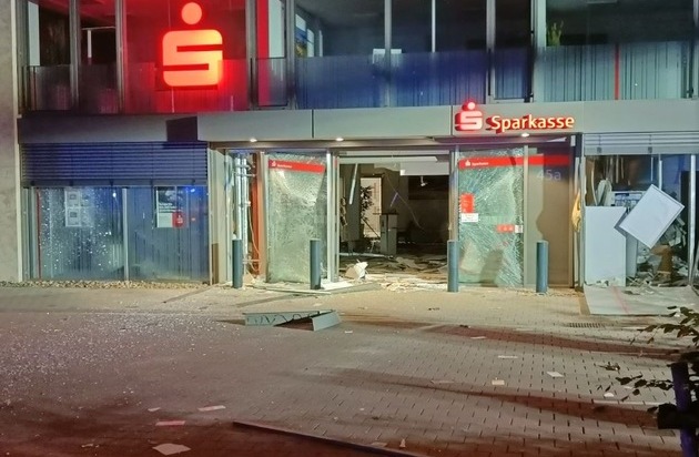 In der vergangenen Nacht (auf Mittwoch, 8. Juni) kurz nach 3 Uhr drangen mehrere unbekannte Männer in eine Bankfiliale an der Bundesstraße in Roetgen ein und sprengten im Vorraum einen Geldautomaten. Das teilt heute die Polizei mit.