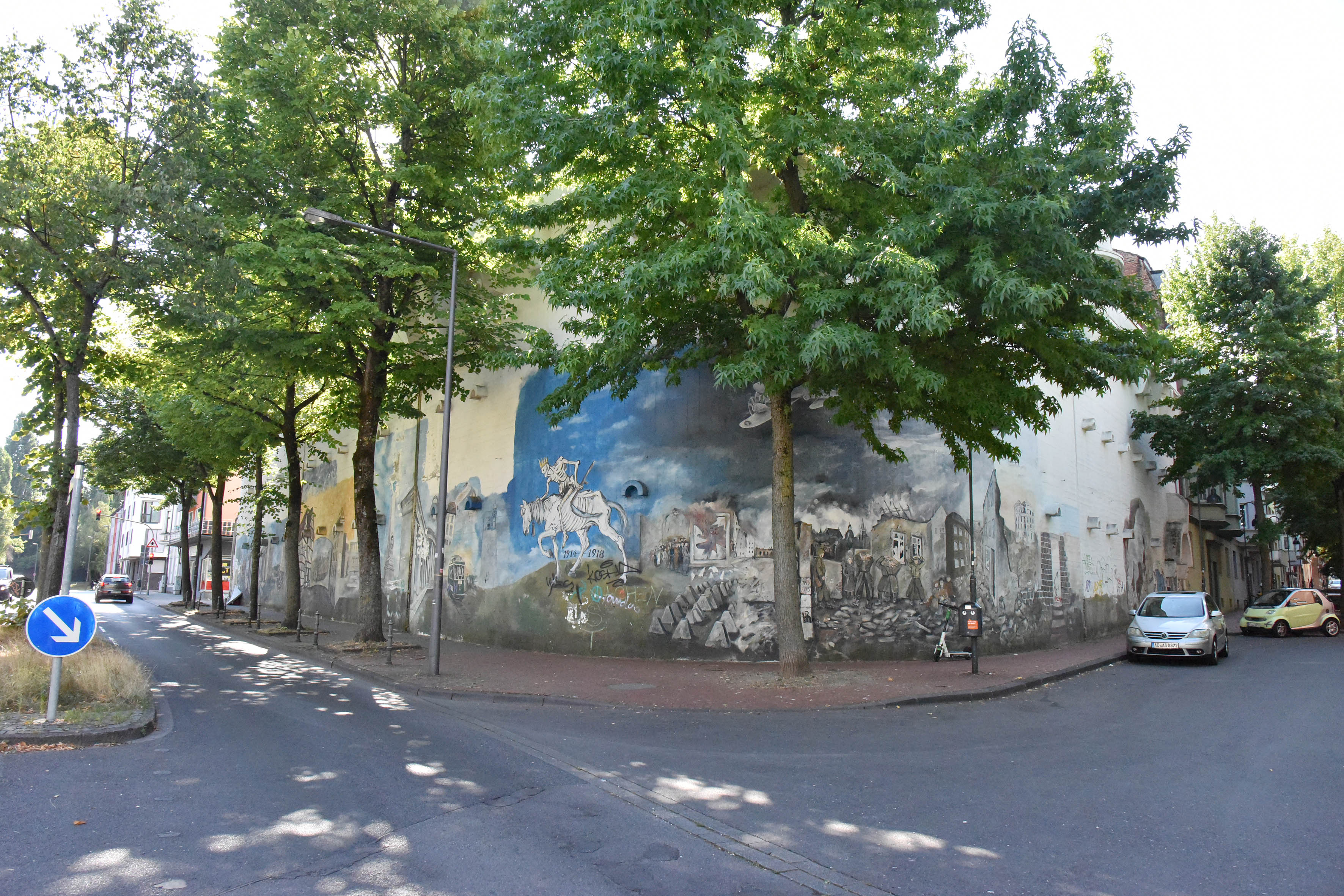 Der Hochbunker mit der markanten Malerei auf der Außenfassade (Foto unten) ist nur einer von über 38 Orten und Programmpunkten an diesem Tag in Aachen. Die Denkmal-Spuren ziehen sich durch die ganze Stadt. Wer auf sie stößt, kann Fragen stellen: Wie hat der Architekt Benno Schachner das Gießerei-Institut entwickelt? Was hat der Wardsche Kasten, benannt nach dem englischen Botaniker und Arzt Nathaniel Bagshaw Ward, auf dem Lousberg verloren? Und welche Geschichtsspuren verbergen sich in Gut Muffet? Antworten gibt es am 11. September.