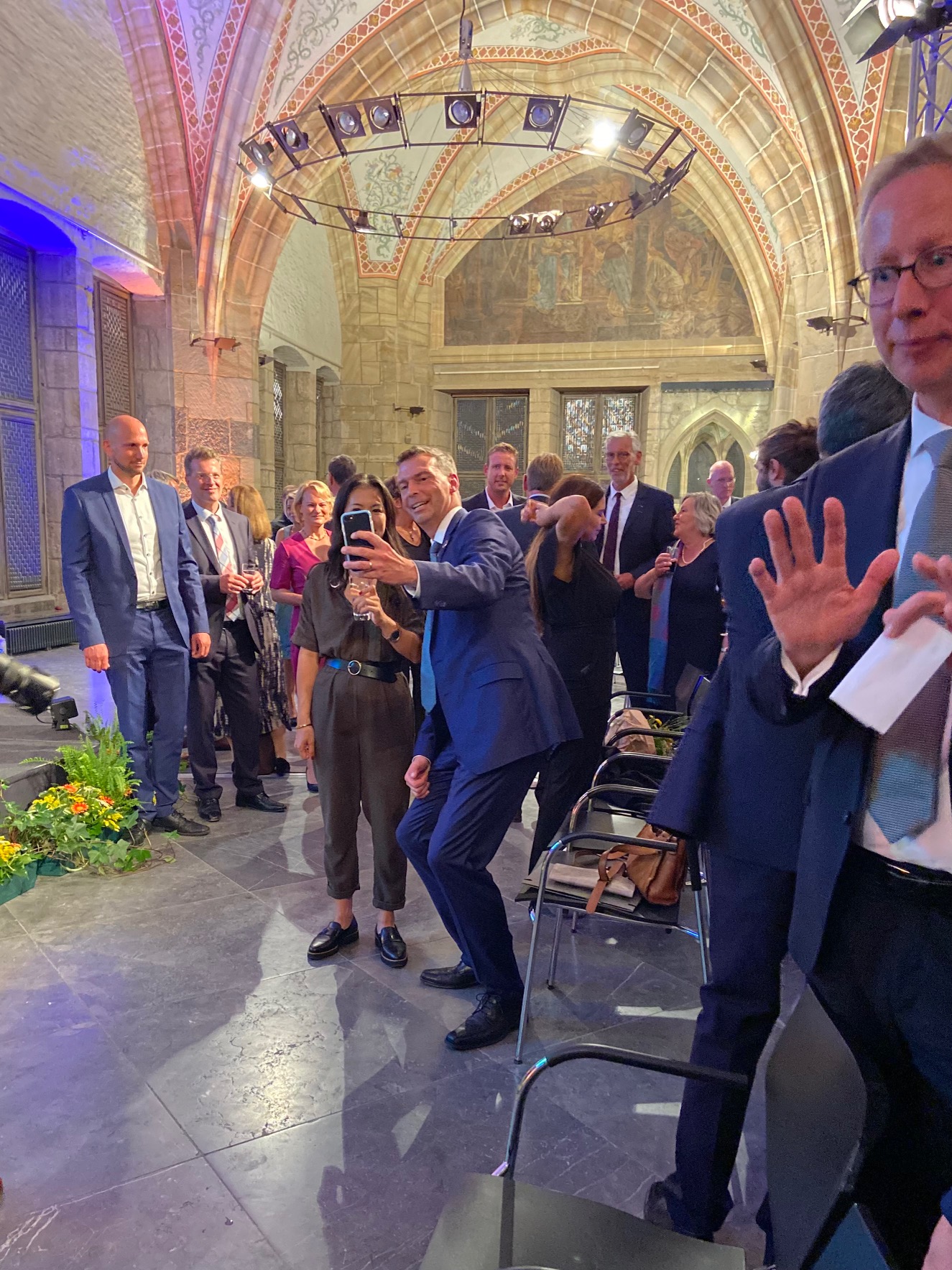 Der Fachkräftemangel sei – als Beispiel – ein ganz reelles Problem, von dem manche meinen, es gebe ihn gar nicht. Dabei „haben wir so wenig Menschen, dass wir in 20 Jahren die Handlungsfähigkeit dieses Staates verlieren“. Die Klimakatastrophe und der demographische Wandel . . . auch das seien Realitäten, von denen immer wieder behauptet werde, es gebe sie gar nicht. Insofern dankte sie Mai Thi Nguyen-Kim, weil es mit ihr möglich sei zu erkennen, was FakeNews sind und was nicht.