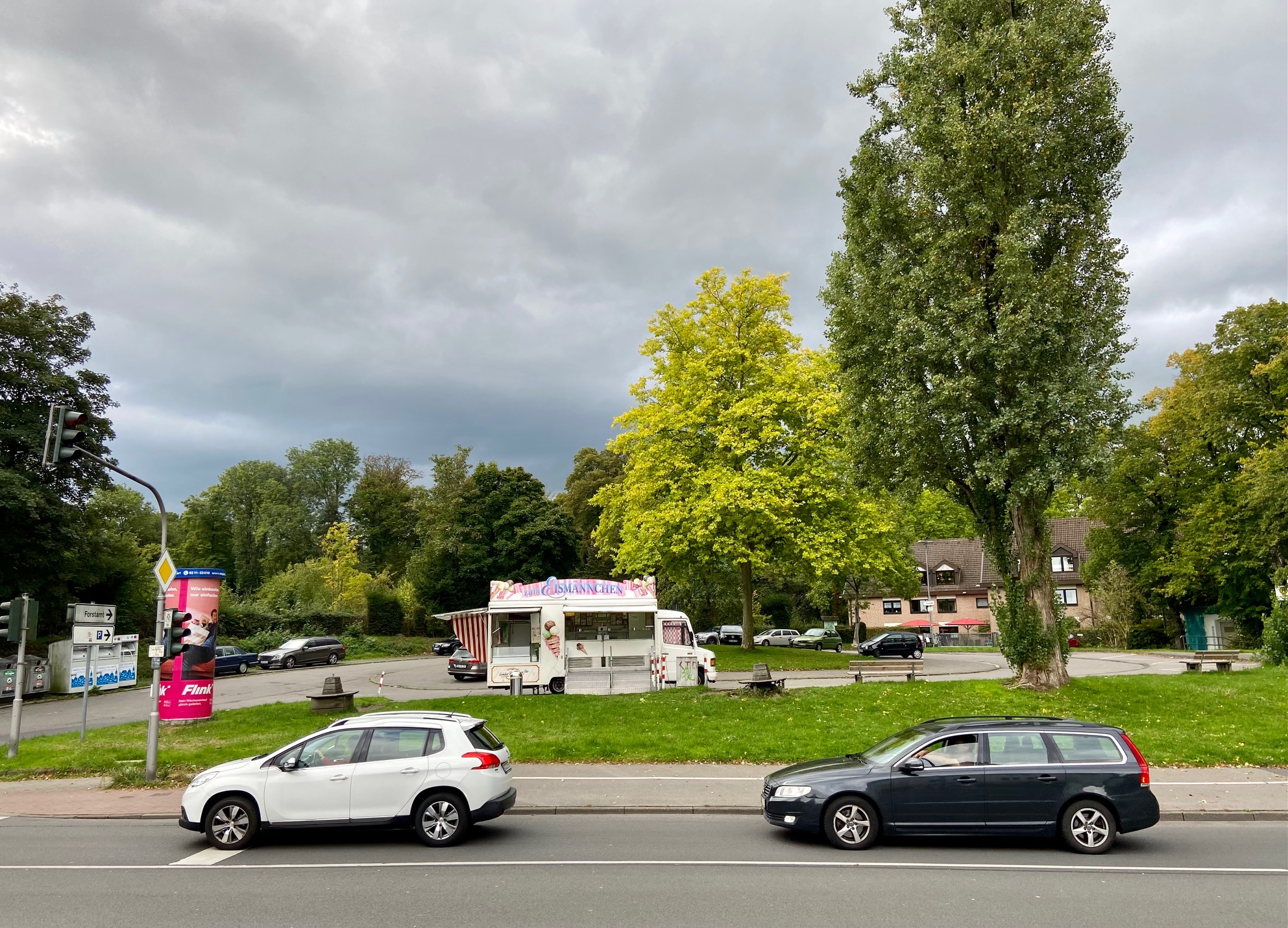 Jetzt auch hier, wie in den Lokalblättern, die Eisbude als Thema: Ein Parkplatz wird gerettet und da steht: „Das ist gerade noch mal gutgegangen.“ Habt Ihr sie noch alle? Das Eismännchen mit seinem mittelmäßigen Eis ist der Stellvertreter für die Auto- und Parksucht. Jedes Eismännchen und Eisweibchen kann auch woanders stehen. Als gäbe es nicht hier und da was Wichtigeres.