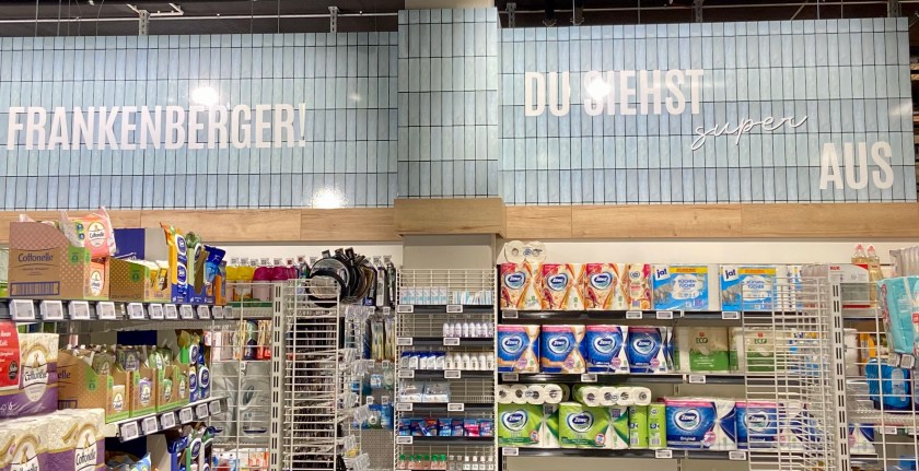 Bei REWE ist seit 3 Tagen anlässlich der Eröffnung die Hölle los. Die Leute kommen rein und kaufen, als gäbe es morgen gar nichts mehr. Okay, morgen ist Sonntag und dann ist Feiertag, insofern gibt es zwei Tage lang nichts. Ob es danach mit dem Ansturm so weitergeht, warten wir mal ab.