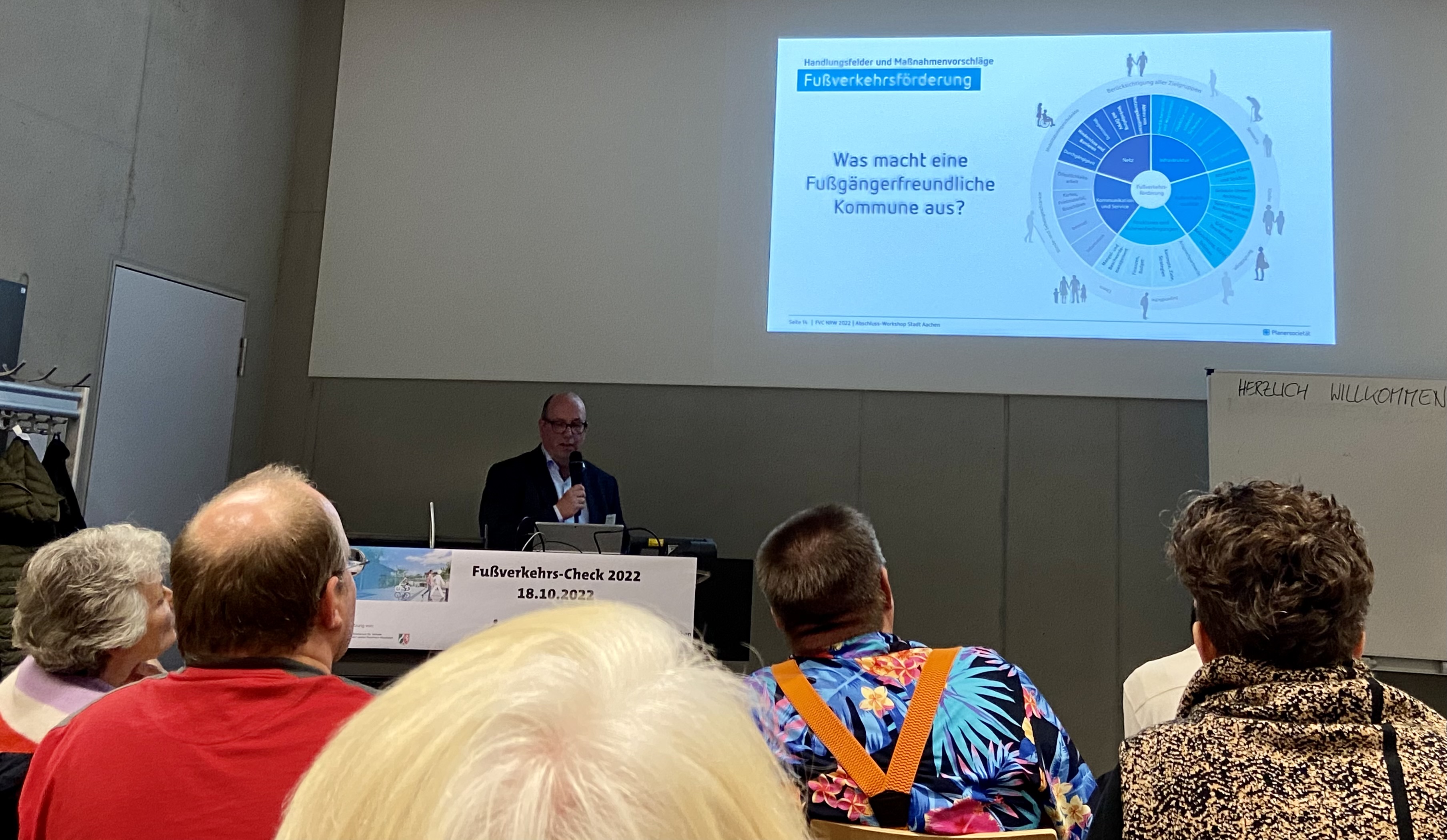Die Mitmachaktion will mit Hilfe der speziellen Analysemethode eines Fußverkehrs-Checks die Sicherheit und den Komfort derer überprüfen, die zu Fuß in der Stadt unterwegs sind. Und das sind in Aachen überraschend viele, wie jüngst ermittelt wurde. Defizite wurden bei den Begehungen fotografiert, gute Ideen gab es reichlich. Die Checks sollen helfen, die unterschiedlichen Bedürfnisse von Fußgänger*innen zu erkennen und bewusster zu machen. Das Planungsbüros Planersocietät betreut die Stadt Aachen im Rahmen der Fußverkehrs-Checks.