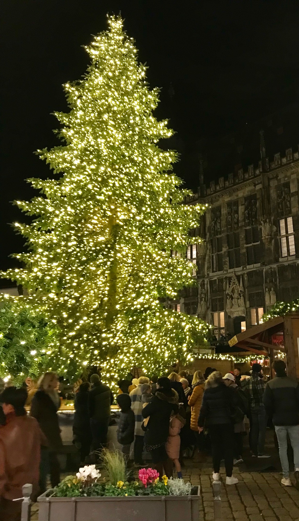 In Aachen hat als erster das Warenhaus Leonhard Tietz den Rat der Stadt gebeten, auf dem Marktplatz einen Baum – auf eigene Kosten – aufstellen zu dürfen. Ihm wurde die Erlaubnis erteilt (s. hier). Ob sich heute die Bewunderer dieses prachtvollen Baumes daran erinnern?