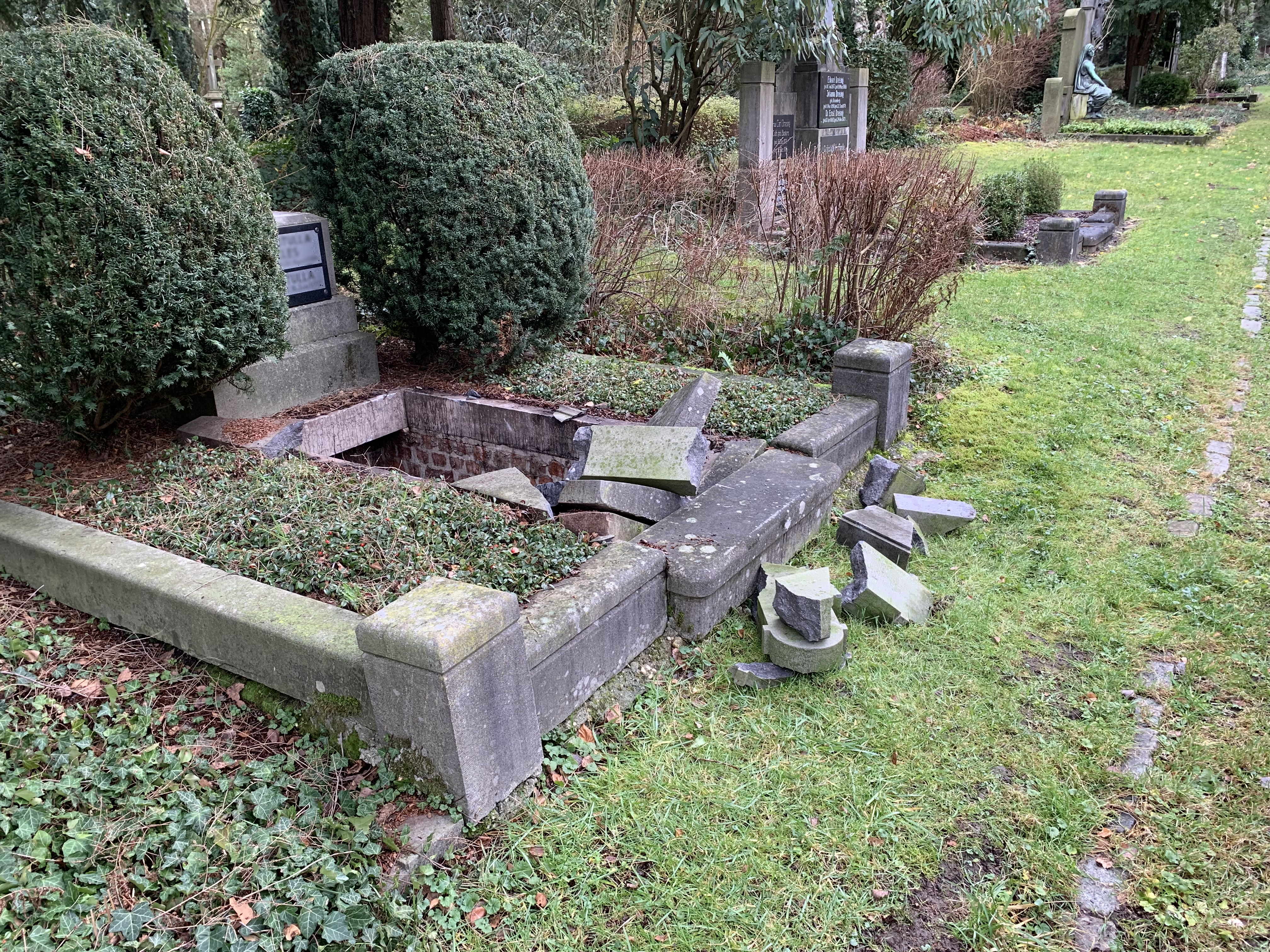 Mehr als 100 Jahre war das historische Denkmal, das jetzt so herb beschädigt wurde, alt. Der Grabstein war mit einem Aufsatz und einem Hochkreuz versehen und insgesamt rund vier Meter hoch. Das Kreuz muss mit entsprechendem Kraftaufwand umgestoßen worden sein, sodass es auf die Gruftplatte fiel, die, wie auch der Grabstein, in viele Teile zersprang. Haben vielleicht Heranwachsende ihre Kräfte gemessen? Wäre da nicht ein Fitness-Center der passendere Ort?