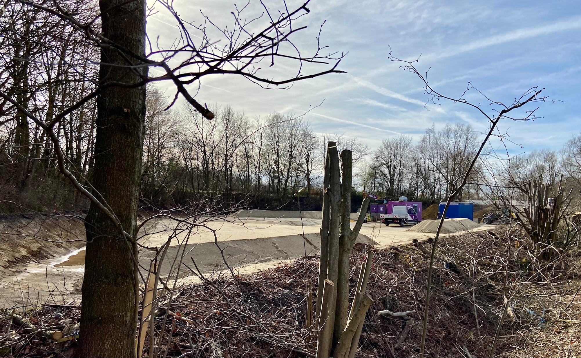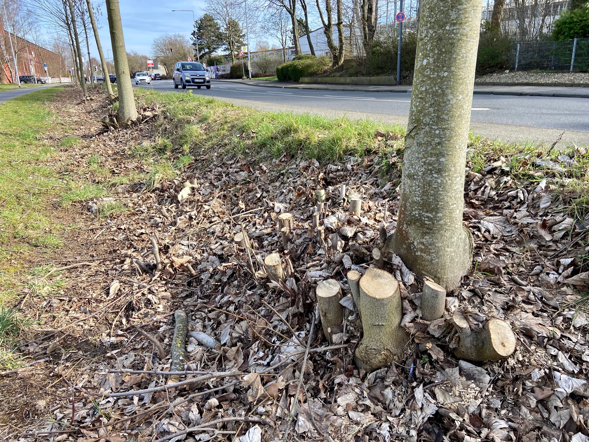 UPDATE: In diesem Beitrag wurde der Begriff „Kahlschlag“ verwendet. Ein sachkundige Leser hat darauf hingewiesen, dass mit Kahlschlag eine vollständige und restlose Entfernung ALLER Bäume auf einem Gebiet gemeint ist. Das ist am Vennbahnweg nicht geschehen. Es sei passender, von einer „Abholzung“ zu sprechen. Der Text wurde entsprechend geändert.