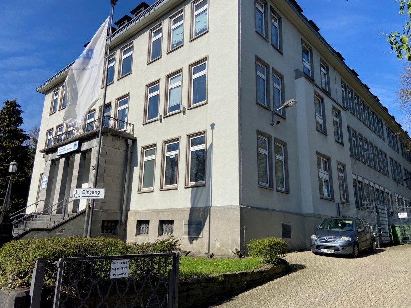 Seit gefühlt ewigen Zeiten soll das alte Knappschaftsgebäude samt Anbau aus den 70er Jahren abgerissen werden. Der Altbau wurde 1952 errichtet, die Bäume im dahinter liegenden Stadtpark wachsen dort seit vielleicht 80 Jahren. Diese Bäume, 19 Stück, alt und schön, sollen ebenfalls abgerissen werden. Was mit dem Evangelischen Friedhof (sehenswert) passiert, ist hier nicht bekannt.