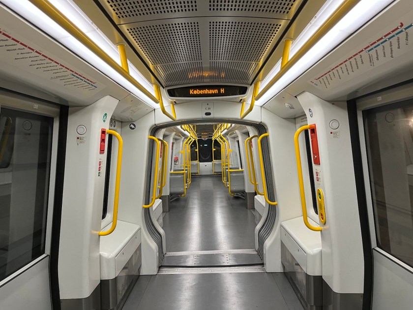 Zusätzlich gefällt in Kopenhagen das gute fahrerlose Metro-Netz. Das sieht aus als wäre es neu. Alle 3 Minuten erscheint ein Wagen, es ist eine praktische Angelegenheit. ÖPNV in Kopenhagen.
