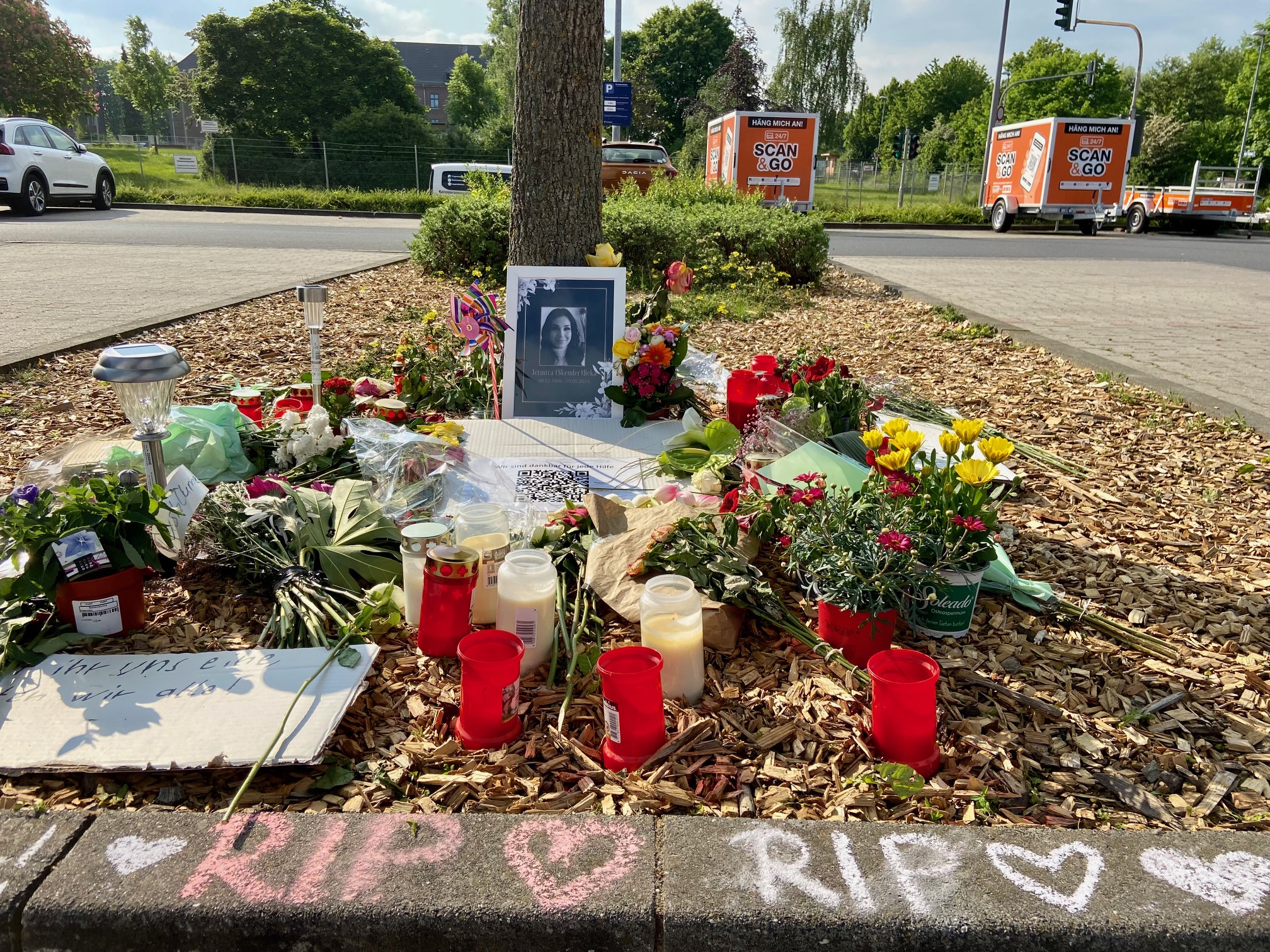 Frauen haben unterdessen Kerzen aufgestellt und Blumensträuße niedergelegt. „Eine von uns“, steht auf einem Stück Pappe. Es gab sogar ein gemeinsames Gedenken von etwa 60 Personen.