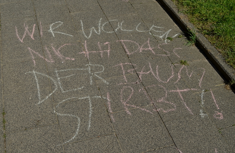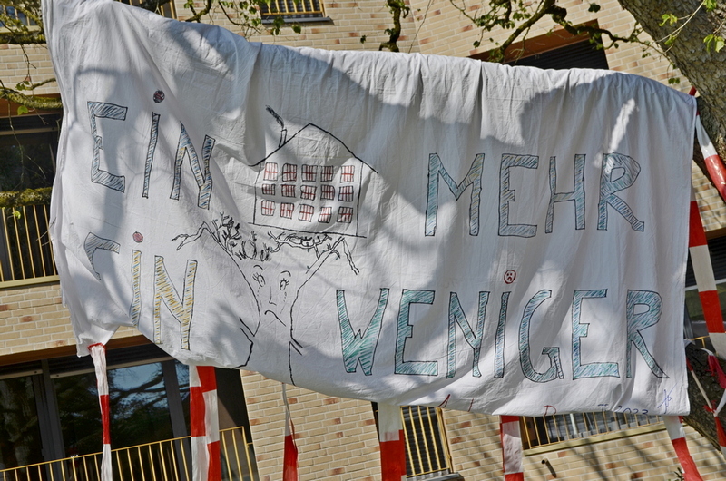 Leute vom Aachener Baumschutzbund haben ihn jedenfalls nicht aufgegeben und den Baum mit Wasser versorgt, Unbekannte* haben ein Laken beschriftet und den schlimmen Zustand des Baumes mit dem nebenan errichteten Gebäude in Verbindung gebracht.