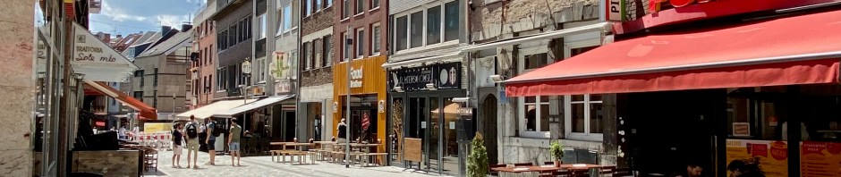 Zunächst in die Pontstraße. Unten – auf Höhe der Sparkasse – wird noch gearbeitet, aber im oberen Bereich ist schon alles perfekt. Viel versiegelte Fläche gibt es und weit und breit keinen Baum. Aber das hat wohl seine Richtigkeit, bei der hohen Frequentierung sind große Ladezonen ein Muss. Derzeit ist wegen der Semesterferien wenig los in der Pontstraße, doch das wird sich ab Oktober schlagartig ändern. Bezüglich Gastronomie gibt es dort vor fast jedem Haus eine Terrasse.