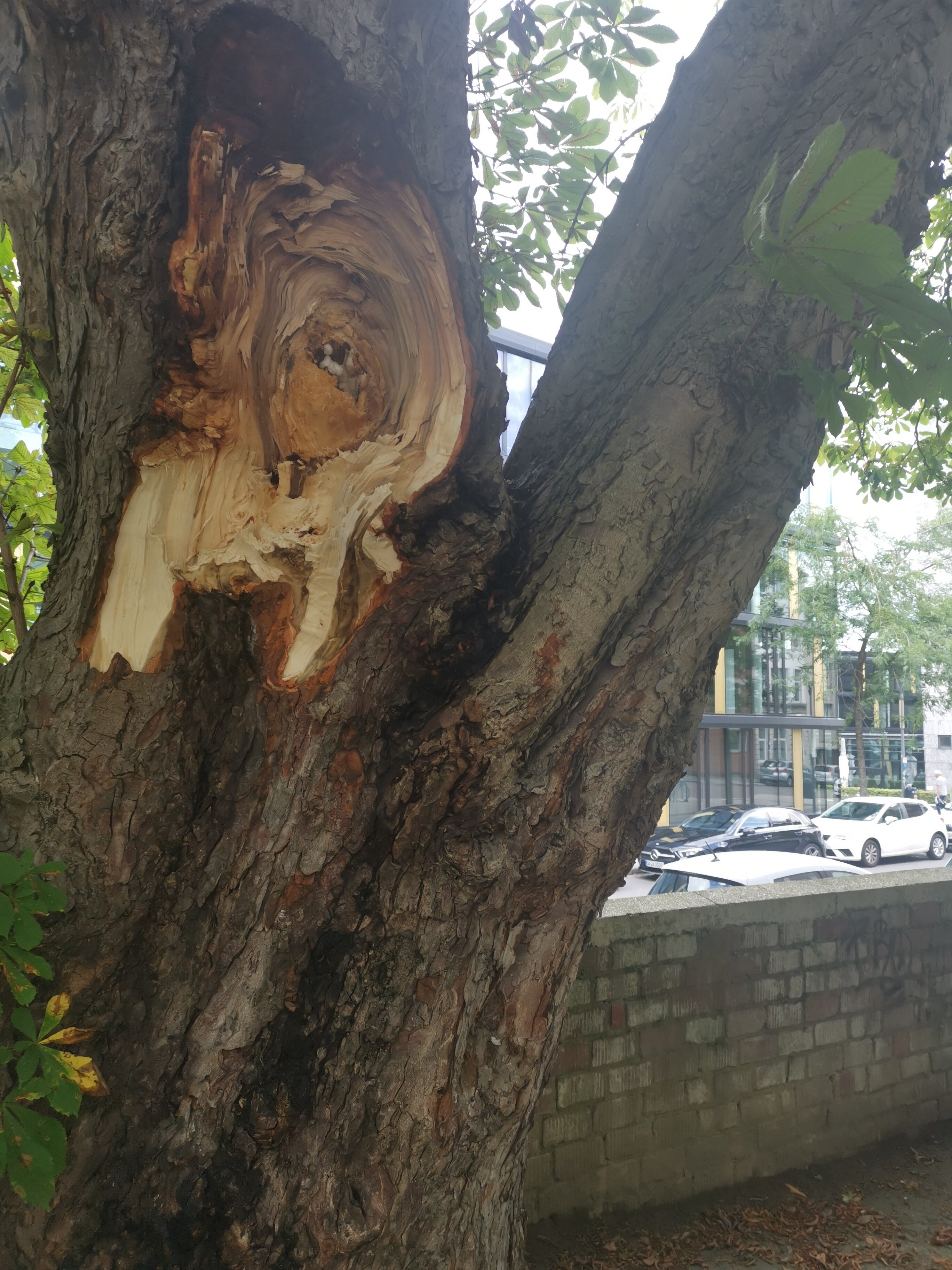 Die Baumunterhaltung muss den Baum deshalb am kommenden Montag, 7. August, entfernen. Die Verkehrssicherheit ist nicht mehr zu gewährleisten. Die Kastanie „stellt sowohl eine Gefahr für Besucher*innen des Spielplatzes als auch für den angrenzenden Fußweg und Parkplatz dar“. Zu dieser Einschätzung sind die Fachleute gekommen.