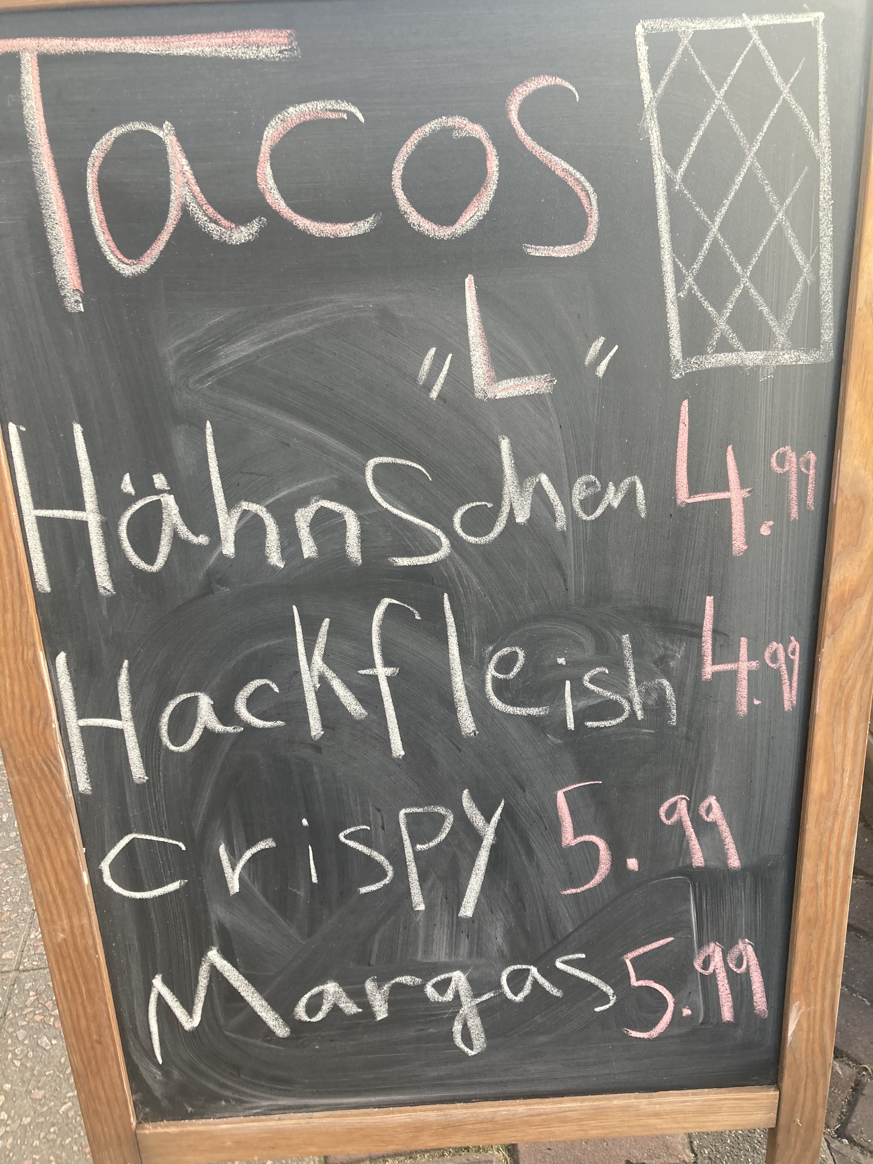 Wir freuen uns über einen offenbar überassimilierten Syrer in der Elsassstraße mit seinem Restaurant-Aufsteller. Der Mann hat offenbar ein feines Ohr und nichts anderes getan, als seinen wahrscheinlich häufigen Höreindrücken des Öcherischen in der Schriftsprache Raum zu geben.