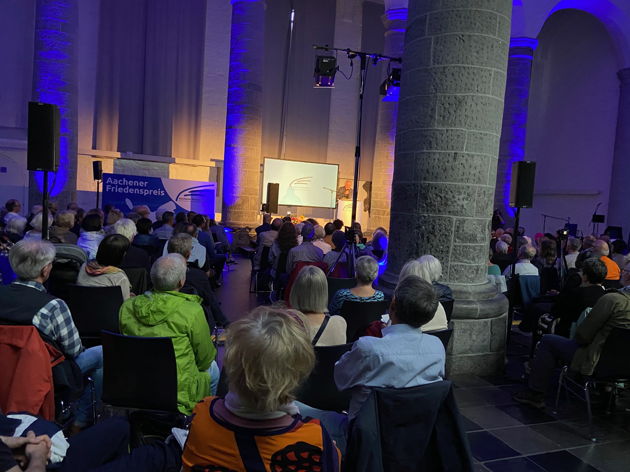 Knapp 500 Personen werden es gewesen sein, die am Antikriegstag (1. September) bei der Verleihung des Aachener Friedenspreis unbedingt dabei sein wollten. Die Aula Carolina war voll wie selten, denn es wurden in diesem Jahr extrem mutige Menschen ausgezeichnet. Menschen, die anderen Mut machen, weil sie zeigen, dass selbst in schier hoffnungsloser Lage Widerstand doch möglich ist.