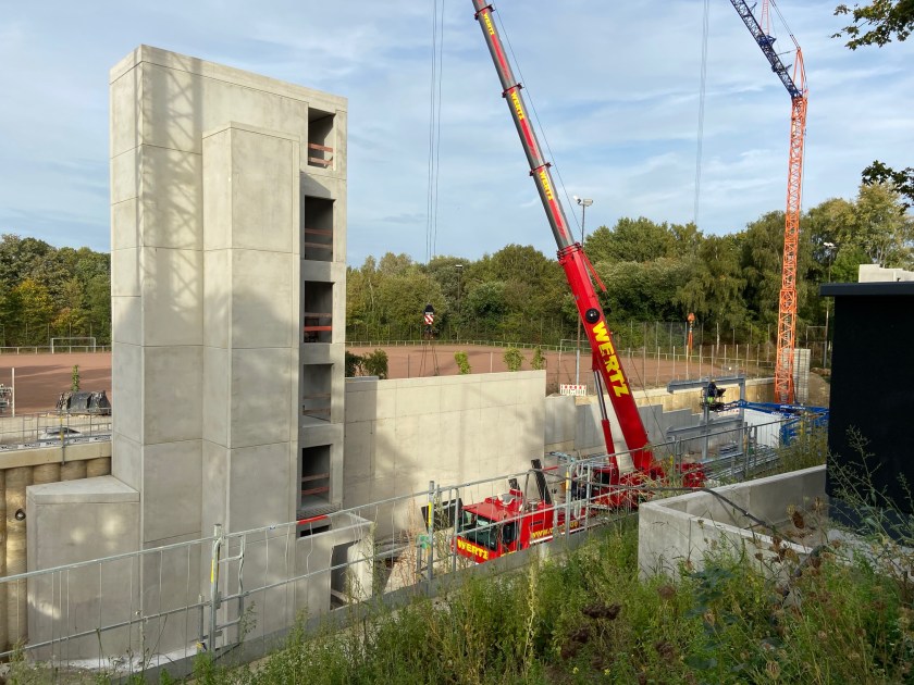 An der Vaalser Straße wird ein neues Parkhaus gebaut. Die Arbeiten gehen zügig voran. Das Unternehmen Abiomed baut, will expandieren, mehr Menschen einstellen, die teils von außerhalb kommen und braucht Parkplätze.