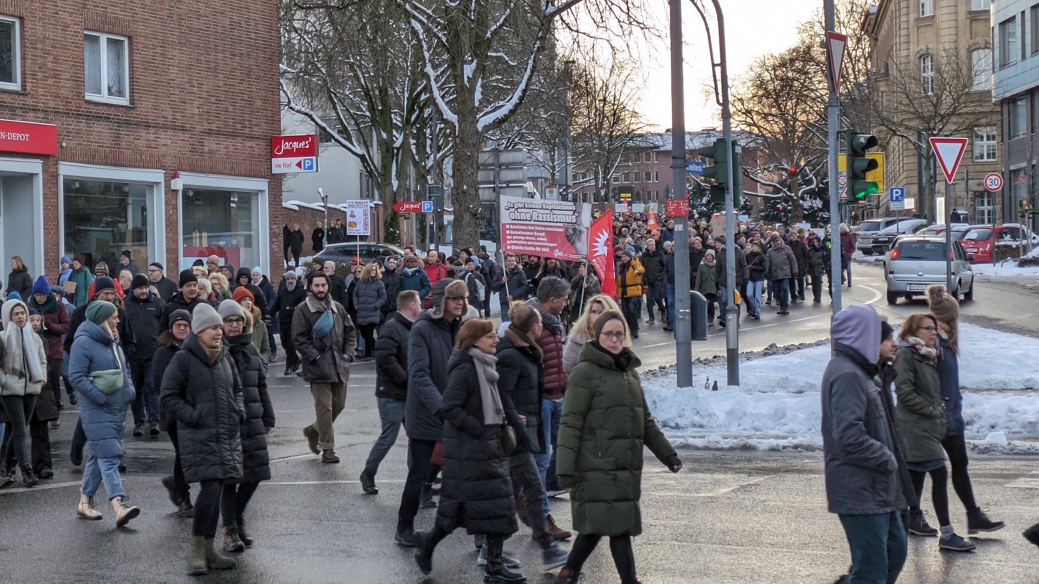 Als die Demonstration im Frankenberger Park angekommen ist, meinten die Veranstalter, es seien wohl 10.000 Menschen auf der Straße. „Das kann wirklich sein“, schätzte Christoph Allemand, für die Fraktion Zukunft im Rat der Stadt. Und: „Es ist krass voll.“