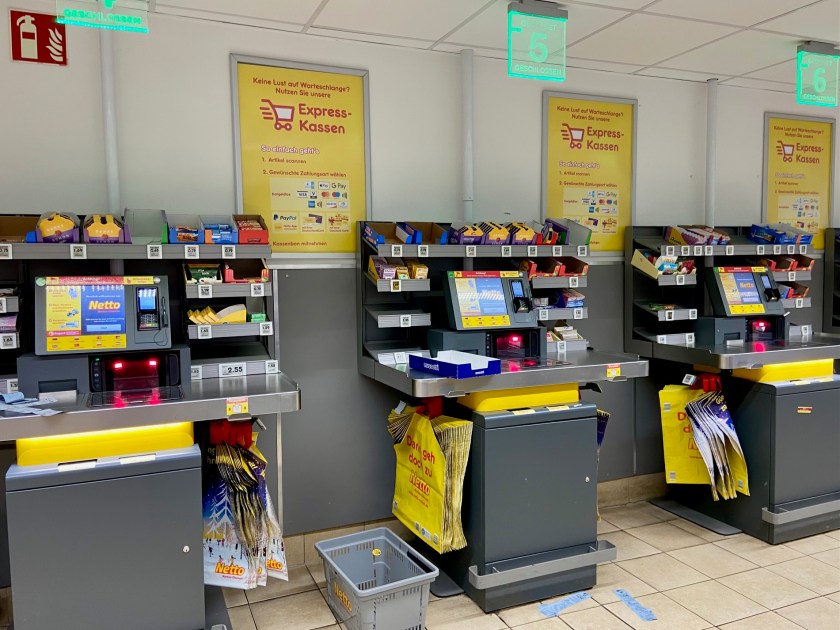Man denkt gleich an den Personalmangel und daran, dass die stets hilfsbereite und humorvolle Kassiererin, wie man sie bei Netto manchmal vorfindet, eigentlich auch ganz gut in einer Aachener Kita helfen könnte. Dort besteht nämlich ein Mangel an Helferinnen, den eine Maschine niemals wird beheben können. Aber das ist ein anderes Thema.