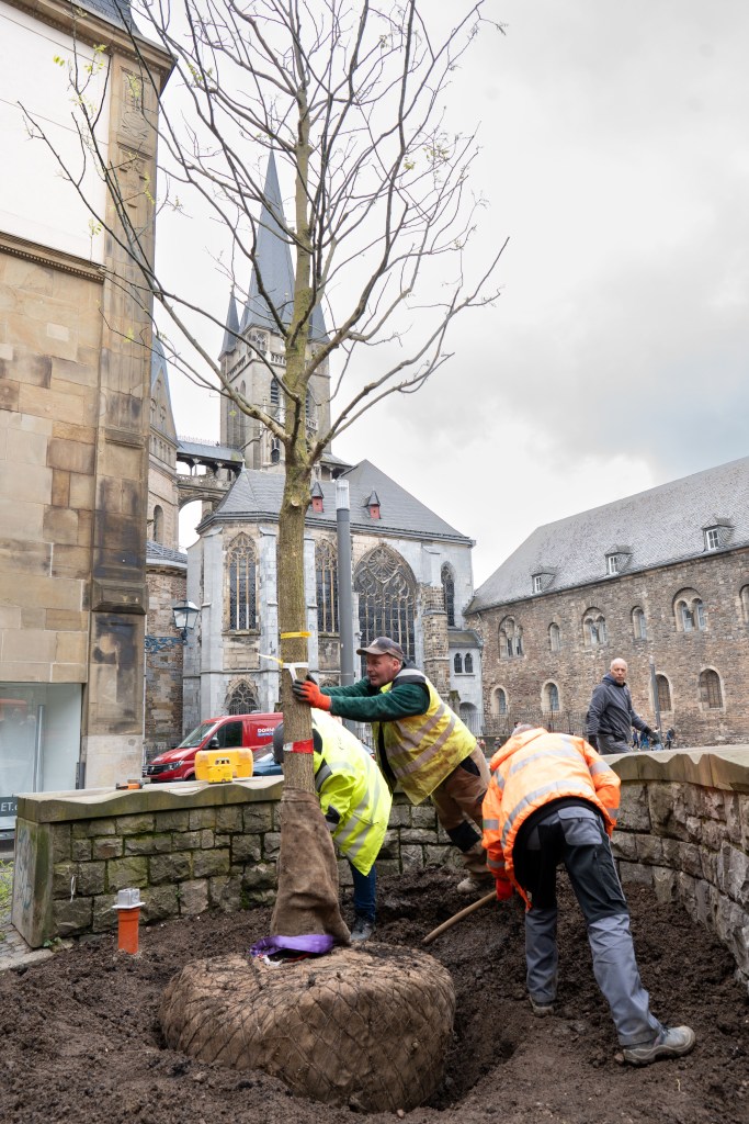 Die bisherige Baumart, die Rosskastanie, wird zurzeit nicht nachgepflanzt. Das teilt die Pressestelle der Stadtverwaltung mit. Bei diesen Bäumen können die Blätter von der Rosskastanien-Miniermotte befallen werden. – Krankheiten waren im Mai 2022 die Ursache für die Fällung der 120-jährigen Rosskastanie auf dem Katschhof.