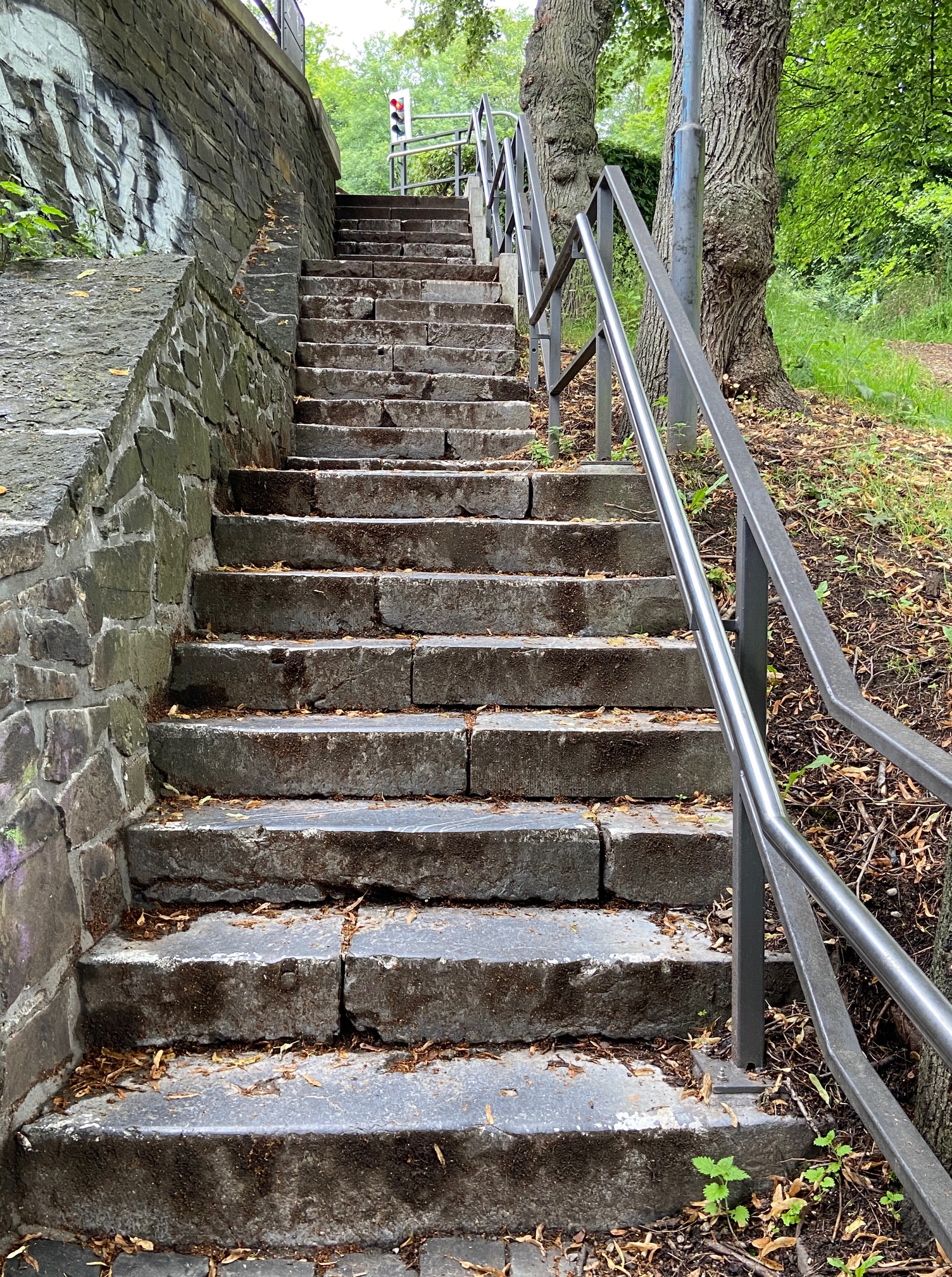 Steil und im Dunkeln, also in Herbst und Winter, naß und schwer zu begehen ist die Treppe am Napoleonsberg in Kornelimünster.