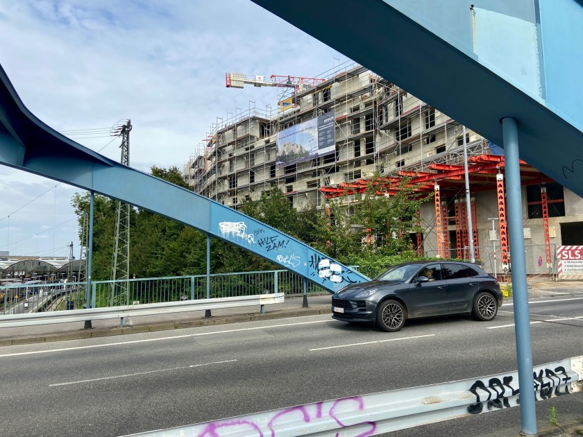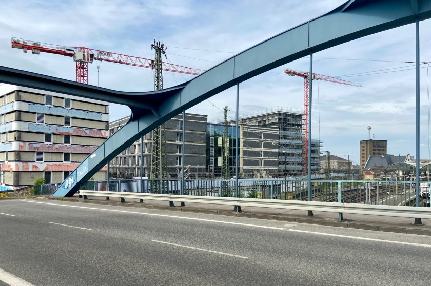 Wer lange nicht mehr die Burtscheider Brücke hochgefahren oder -gegangen ist, der steht und staunt: Ein großer Wohnkomplex ist in die Höhe gewachsen. Auf 6 Geschossen und insgesamt 9000 Quadratmetern Wohnfläche werden ab 2026 Menschen wohnen . . . wenn nicht, wie bei den 5 Bauwerken (Blue-Gate-Komplex) genau gegenüber, der Investor das Handtuch wirft.