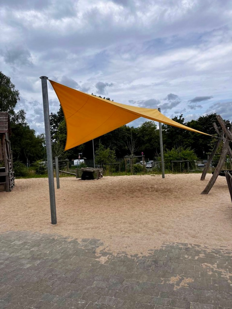 Denn seit wir den coolen Vorschlag vernahmen, sahen wir diesen Sommer überall diese Segel im Einsatz und hörten von keinem einzigen Unfall. Ist das Zufall? Sonnensegel überall möglich, nur auf Aachener Spielplätzen nicht?