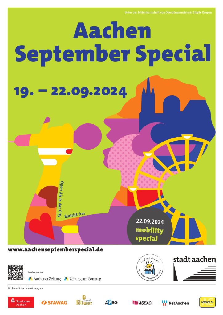 Außerdem findet zum fünften Mal das „mobility special powered by STAWAG“ statt und zwar am Sonntag, 22. September. Dort präsentieren sich auf dem Markt von 12 bis 17 Uhr Aussteller rund um das Thema Mobilität und informieren über E-Bikes, Car-Sharing und vieles mehr.