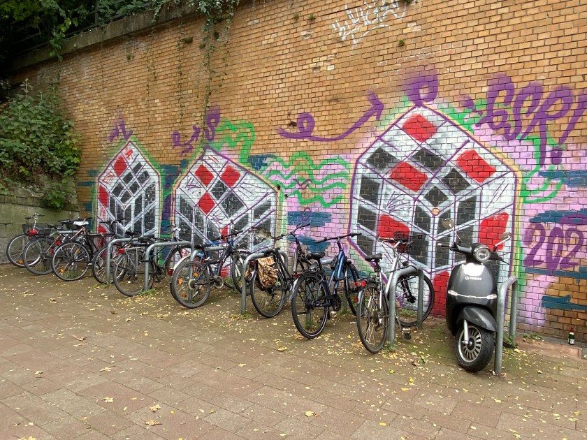 Das ist schwer: Eine Straßenszene in Aachen fotografieren, wo nicht mindestens ein Fahrrad auf dem Bild mit drauf sind.