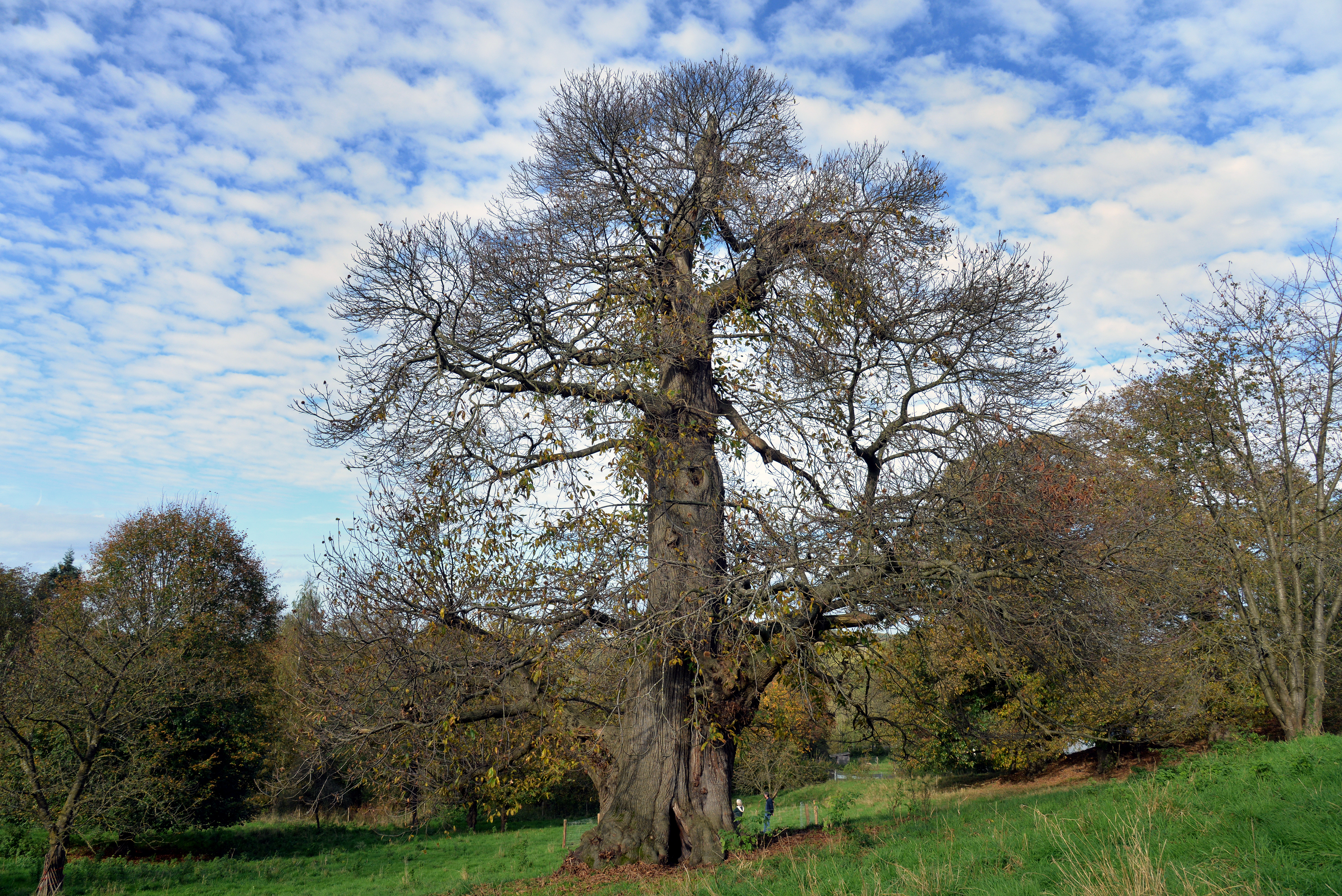 Alt, groß und dick – so kann man die Esskastanie, die jetzt offiziell zum Nationalerbe-Baum ausgelobt wurde, beschreiben. Zum Baum, der auch schon Naturdenkmal ist, führt nun ein umzäunter Fußweg. Zudem wurde eine Infotafel angebracht, eine Bank davor soll noch folgen.
