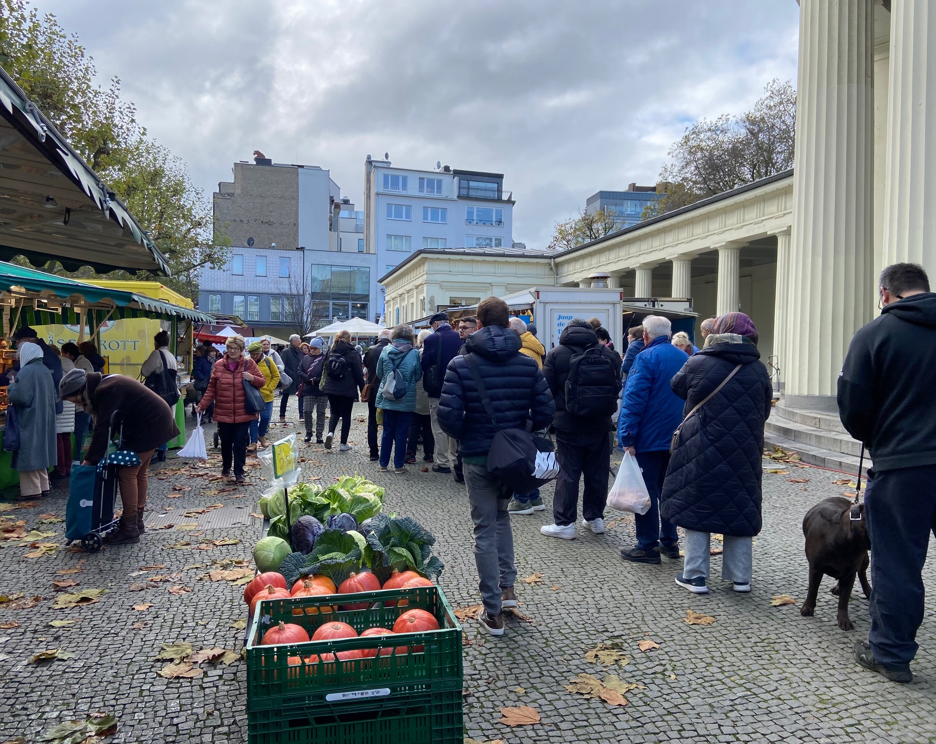 In eine ganz ähnliche Schlange haben sich andere Feinschmecker eingereiht. Der Markt ist gänzlich an den Elisenbrunnen umgezogen. Er wird jetzt – wie es die Kundschaft und die Beschicker seit Jahren fordern – nur noch am Elisenbrunnen stattfinden. Es hatte sich Dienstag eine lange Schlange aufgestellt, um frischen Fisch zu kaufen.