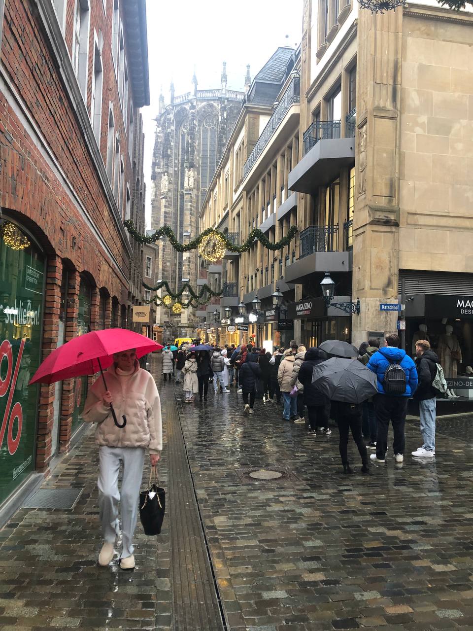 50 Tafeln sollen für Aachen zur Verfügung gestanden haben, wie eine gewöhnlich gut informierte Person (auf Facebook) berichtete. Mindestens 100 Menschen haben angestanden. Da war längst nicht für jeden ein Stückchen Schokolade dabei. Die neue Dubai-Schokolade soll übrigens nach Pistazien schmecken. Hier seht ihr sie. Die örtliche Presse berichtet ausführlich.