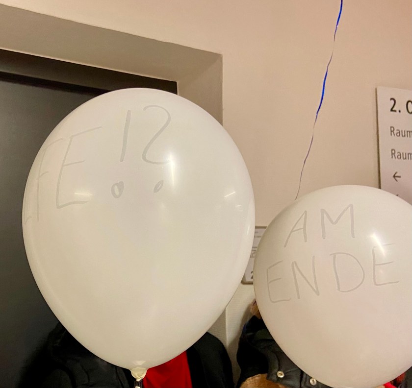 Foto: „Hilfe!?“ und „Am Ende“ stand auf Luftballons, mit denen auf Probleme in den Kitas hingewiesen wurde.