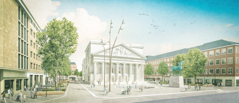 Die Umgestaltung des Theaterplatzes und seines Umfeldes sei „eines der größten Stadtentwicklungsprojekte Aachens“, teilte die Fachverwaltung mit. Begonnen wird mit umfangreichen Leitungsbauarbeiten im Untergrund. In mehreren Phasen wandert die Baustelle dann um das Theater herum.