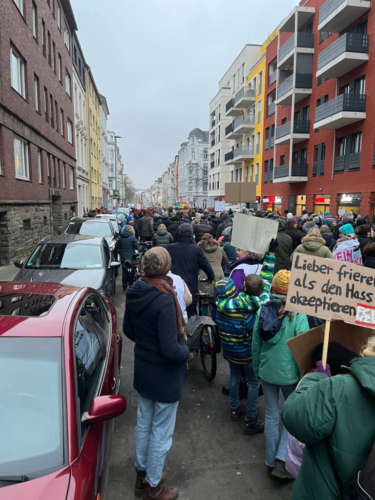 Es ist schön, in einer Stadt zu leben, die Besuche von Neonazis nicht hinnimmt. Der Widerstand – mit den Barrikaden – war vom Feinsten. Bestimmt waren es am Ende rund um den Hauptbahnhof 8000 Menschen, darunter auch Aachens Oberbürgermeisterin Sibylle Keupen.